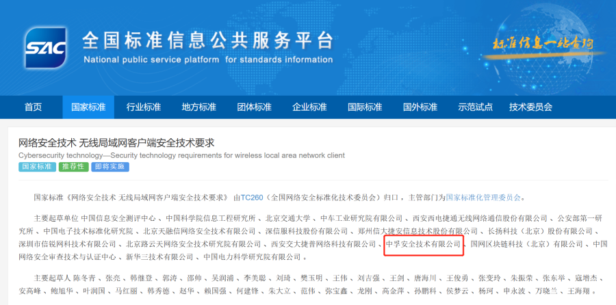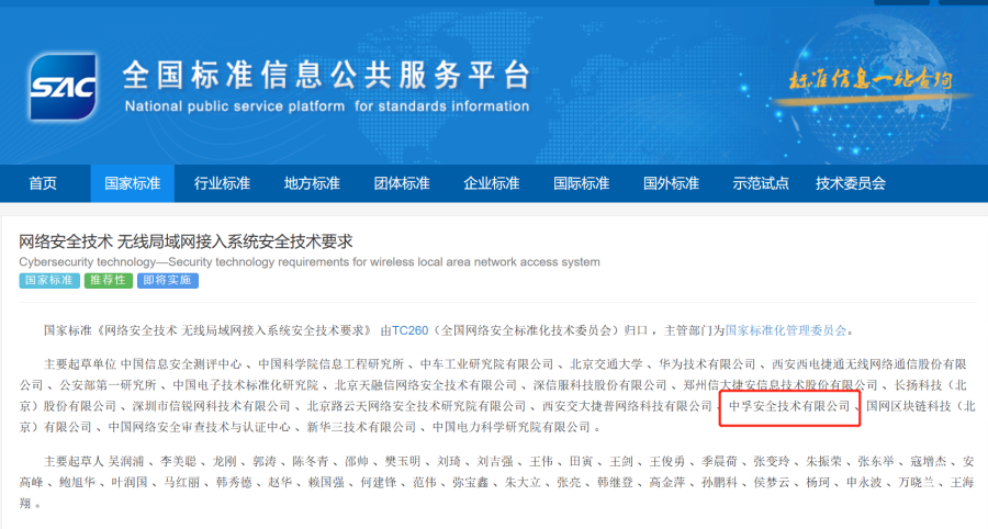 近期,国家市场监督管理总局、国家标准化管理委员会发布GB/T 33565-2024《网络安全技术 无线局域网接入系统安全技术要求》与GB/T 33563-2024《网络安全技术 无线局域网客户端安全技术要求》两项网络安全技术领域国家标准,标准将于2024年11月1日起正式实施。威九国际信息子公司威九国际安全技术有限公司作为主要起草单位参与了两项国家标准的编制。